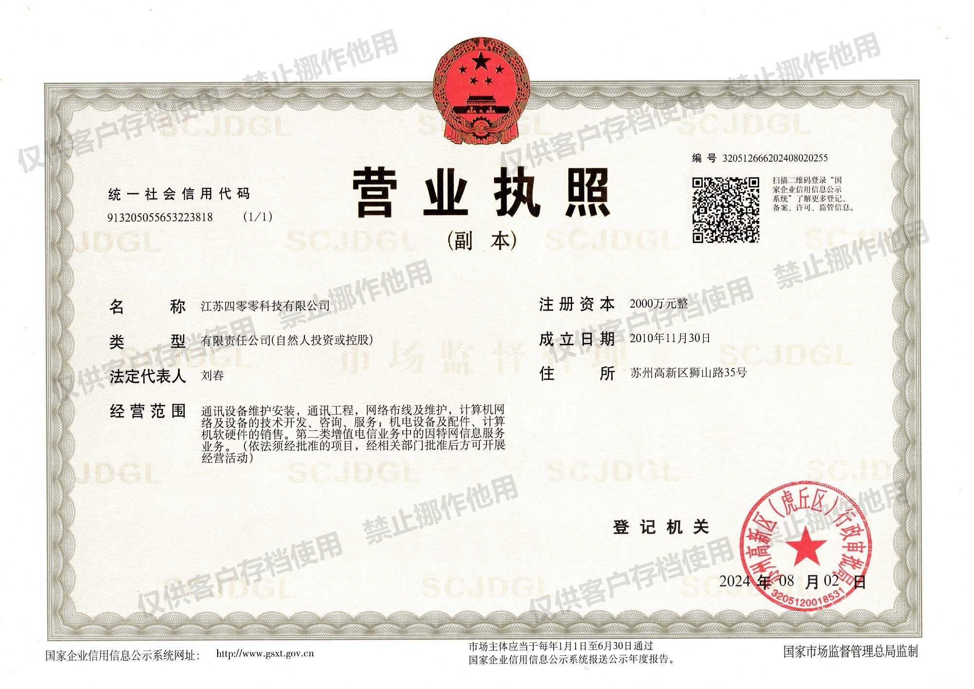 1、增值服务400企业电话必须提供企业营业执照和法人身份证件(扫瞄件发至我们的客服信箱);